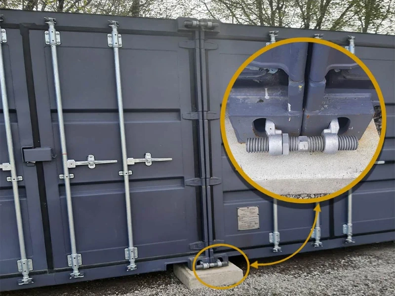 Les griffes d’assemblage des containers vous permettront de rassembler et de fixer solidement les conteneurs à l’horizontale. Elles sont utiles pour maintenir les conteneurs ensemble lorsqu’ils sont placés au sol et les maintenir bien alignés, notamment si vous craigniez que l’un d’entre eux s’affaisse légèrement s’il est plus chargé ou si le sol réagit différemment à la pression du poids.