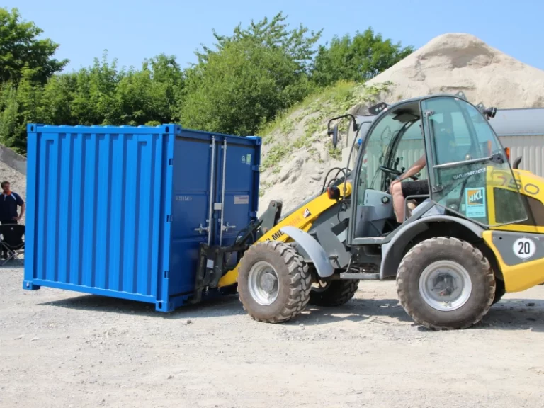 Tous les conteneurs de stockage sont dotés de passages de fourches largeur standard (95 cm d’écartement) pour une manipulation facile. Leur déplacement ou leur chargement sur des camions est ainsi possible avec la plupart des engins de manutention ou de chantier équipés de fourches.