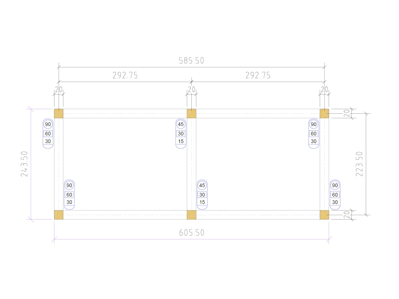 Largeur : 2,435 m (extérieur) 2,240 m (intérieur)