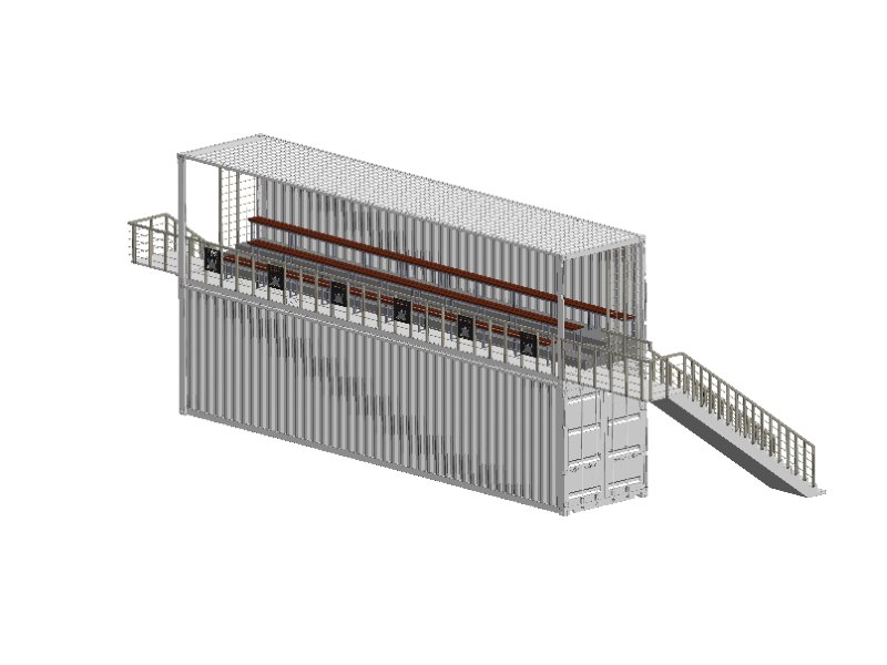 Tribune positionnée à l’étage pour offrir la meilleure vue aux spectateur sur le terrain, au-dessus de tout obstacle au bord de celui-ci (bancs arbitres et joueurs notamment). En-dessous, le container vous offre 29 m²/76 m³ de stockage pour vos équipements divers.
