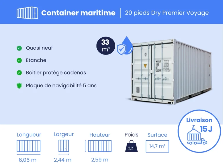 Le coût de dépend directement de la distance entre le port et votre lieu d’installation du container. Faites une demande de devis à partir de la boutique, le coût de livraison sera calculé automatiquement une fois votre adresse renseignée.