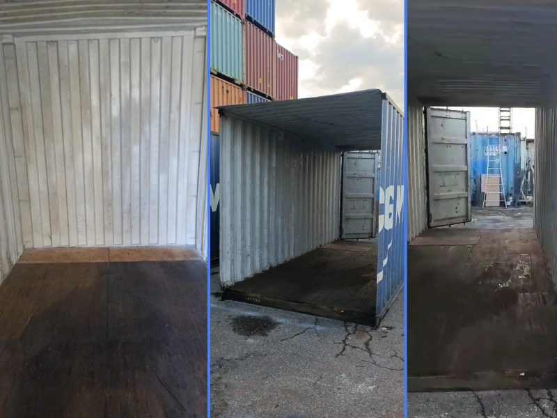 Concrètement cela signifie qu’ils sont garantis étanches, que les portent ferment correctement, que les parois sont rectilignes, que le plancher est OK (avec des traces d’usure cependant mais pas de trous) et que la structure du container est résistante (ils peuvent être empilés et tenir le poids des chargement à l’intérieur).