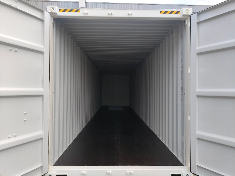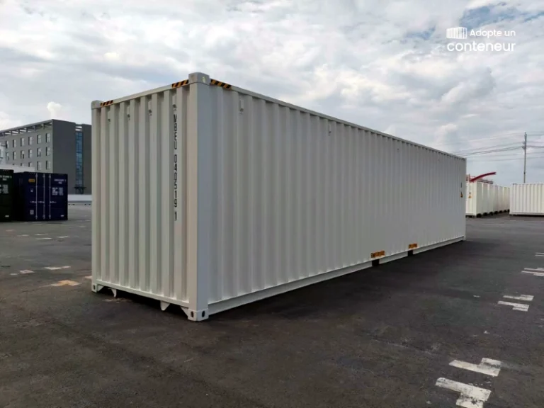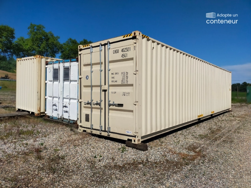 Container maritime quasi-neuf 40 pieds HIGH CUBE (12 m de long, hauteur surélevée à 2,89 m) en acier Corten. Idéal pour stocker ou vos projets de construction en container. Etanchéité garantie. Ouverture par portes doubles. Plancher bois contreplaqué marine.