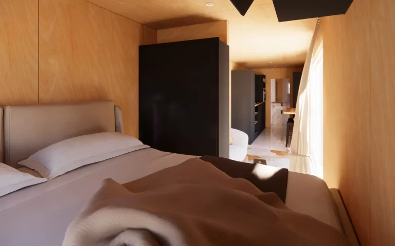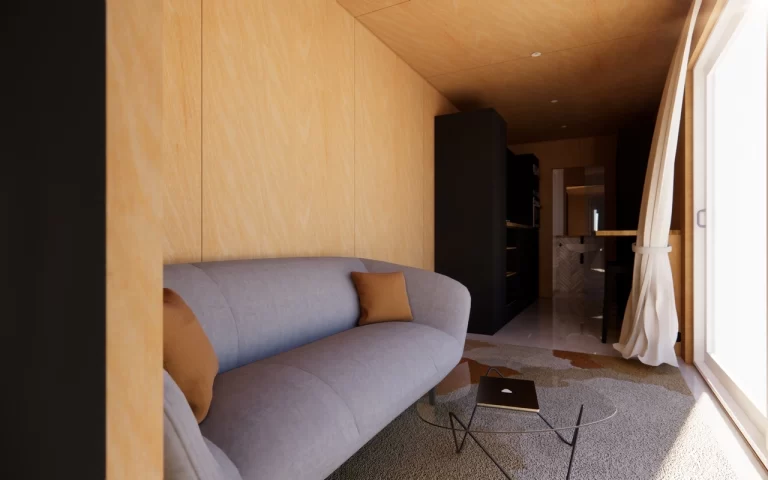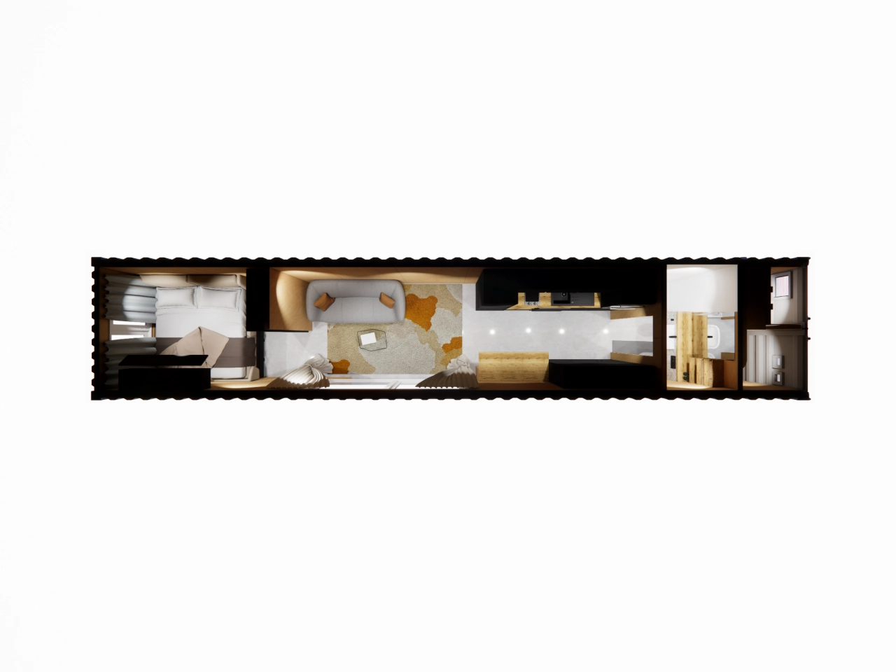Container maritime 40 pieds transformé en un lieu de vie fonctionnel et confortable. Espace de vie de presque 23 m² idéal pour une personne seule ou un couple. Entièrement meublé, avec de nombreux rangements. Cuisine sur-mesure et équipée. Salle de bain avec douche, meuble vasque, WC. Confort toute l’année grâce à une PAC réversible. Isolation par l’intérieur performante. Installation rapide. Couleur au choix.